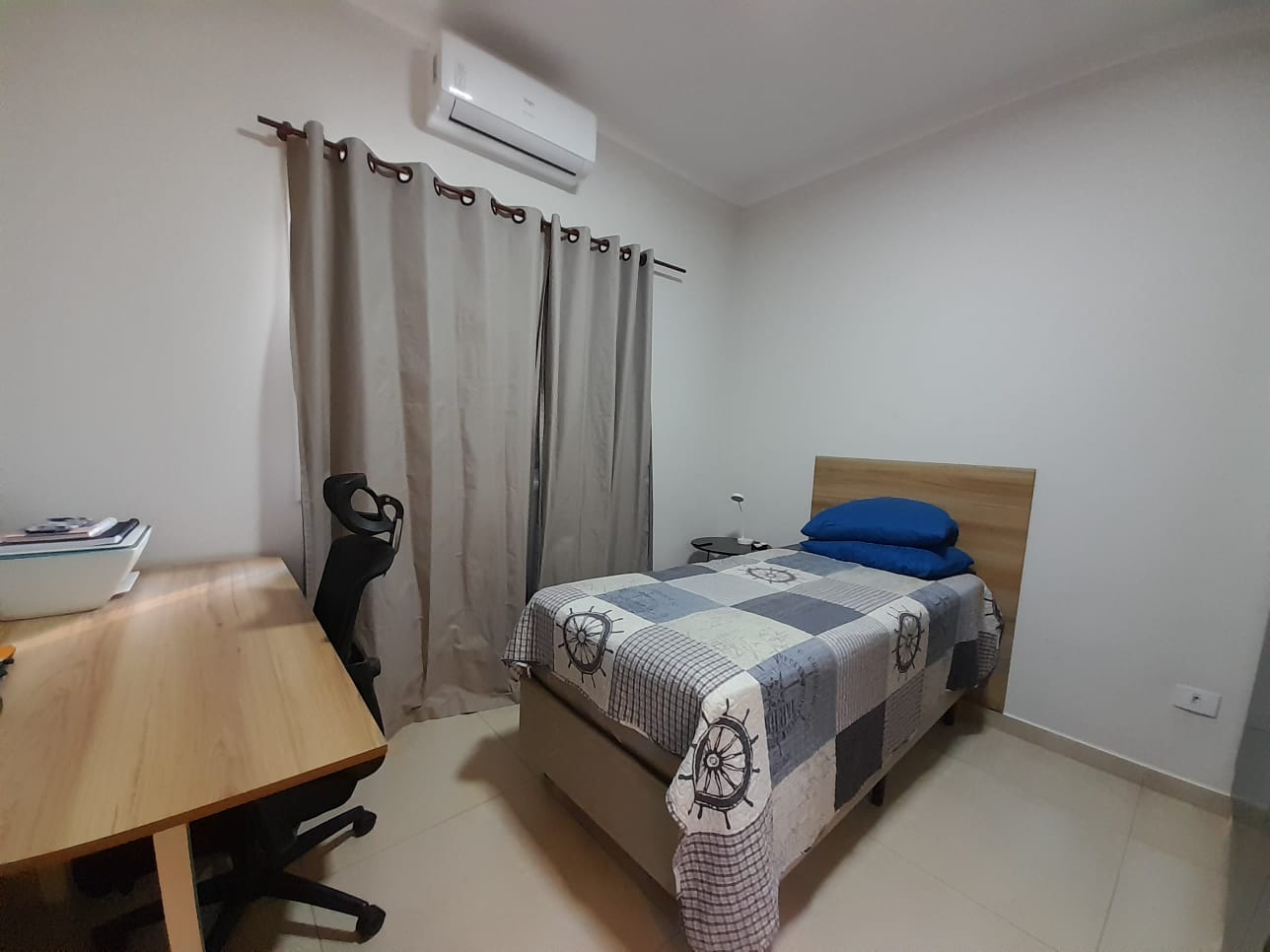 Possui 3 dormitórios (sendo 1 suíte), sala, cozinha, 3 banheiros (sendo um lavabo), 3 vagas de garagem (sendo 2 cobertas), ar condicionado e uma área de lazer completa com churrasqueira e piscina.