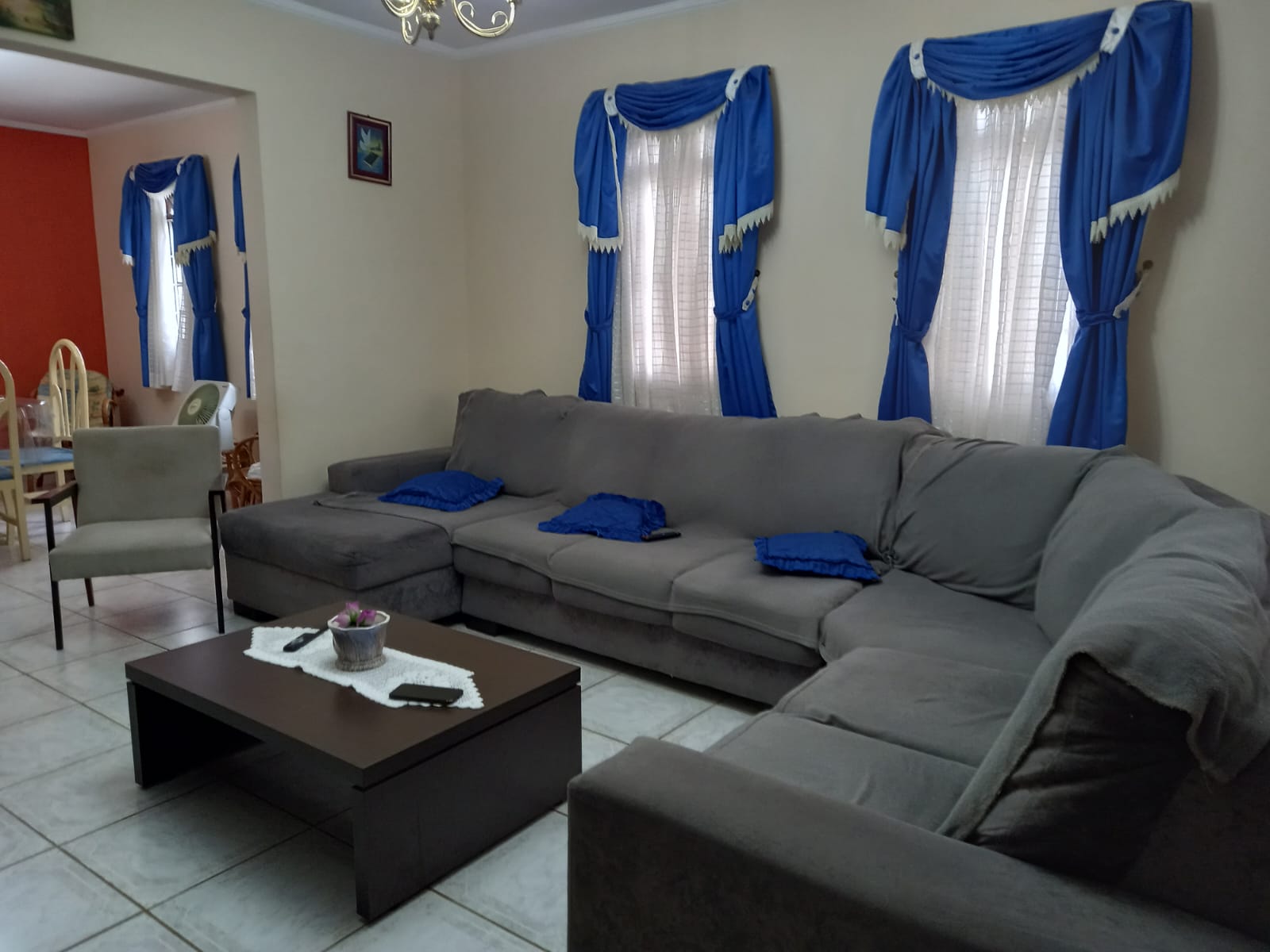 Sala de estar ampla e sala de jantar