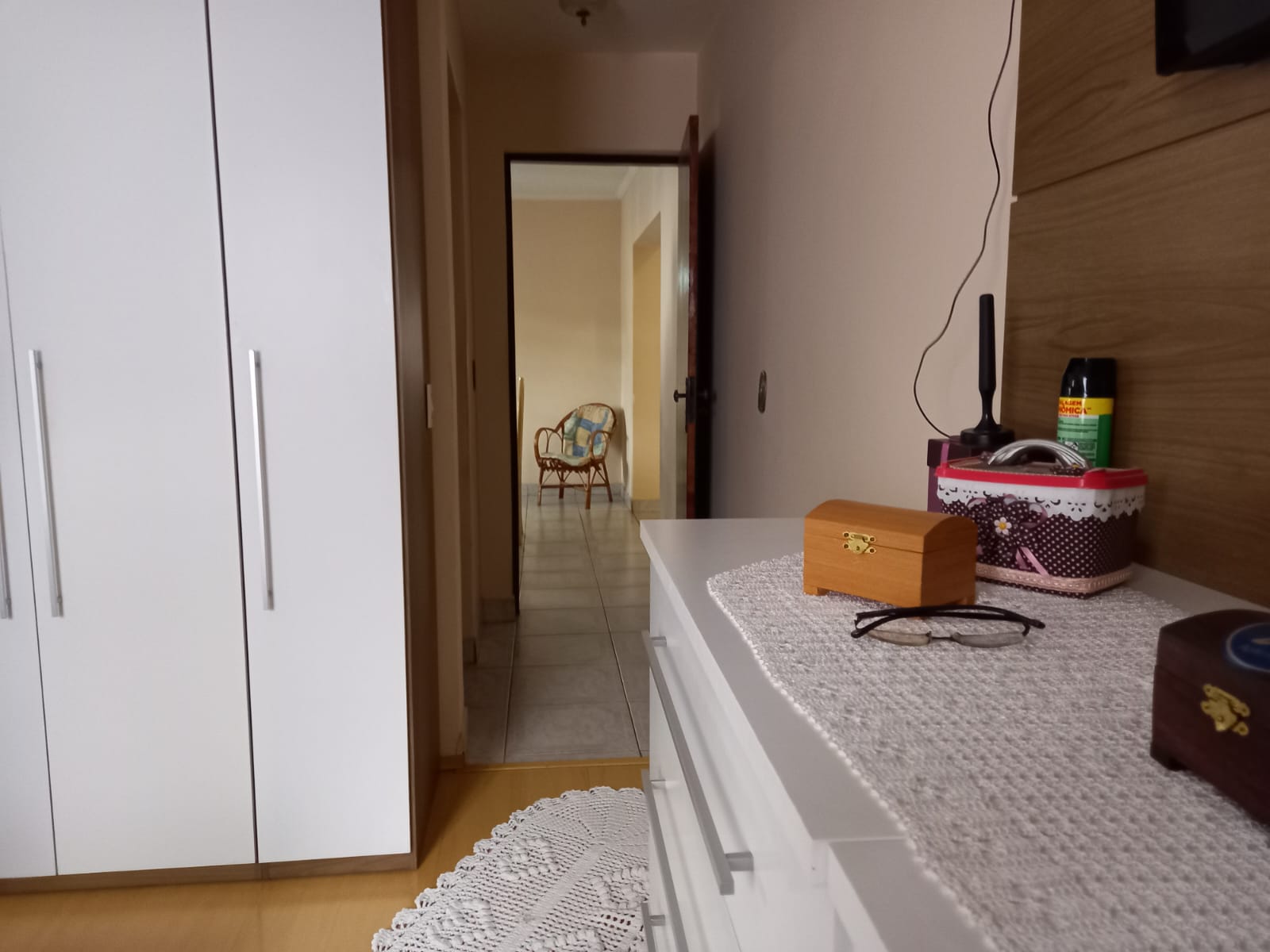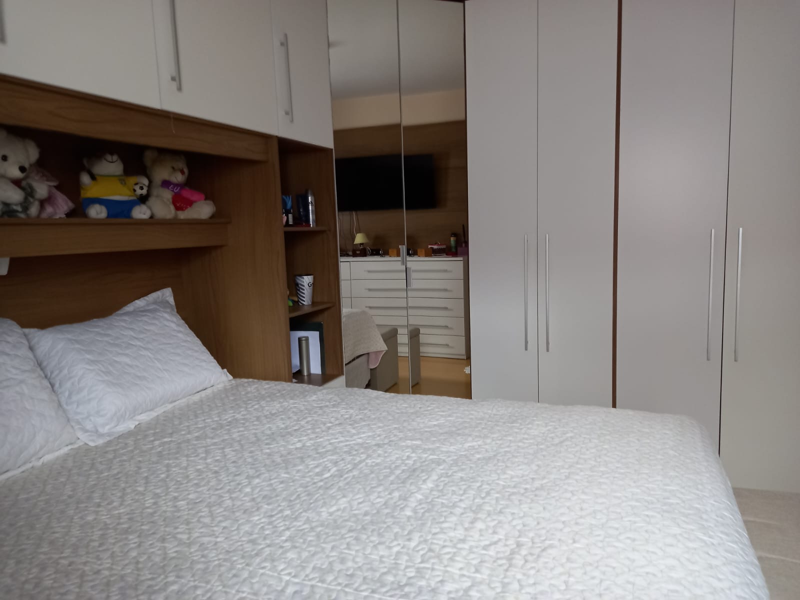 Possui 3 dormitórios confortáveis com piso de carpete de madeira.
