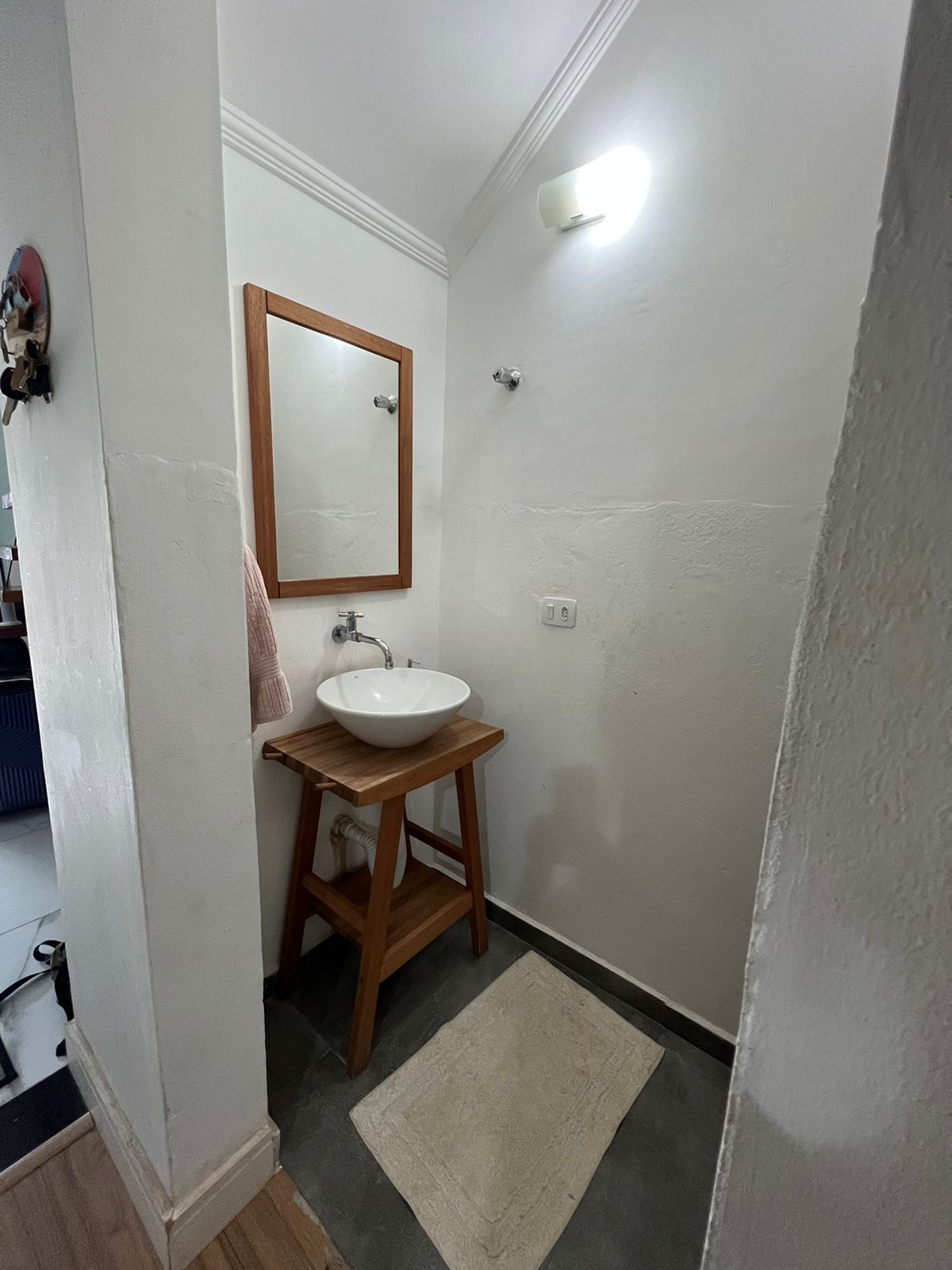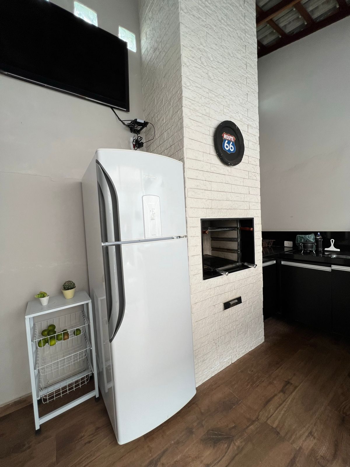 • Sala de Estar: Ampla e mobiliada, conta com um sofá confortável, televisão de 65”, piso de madeira e um lavabo.