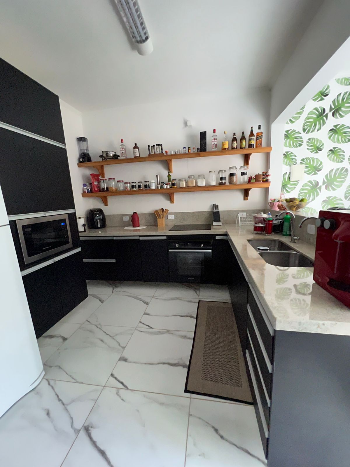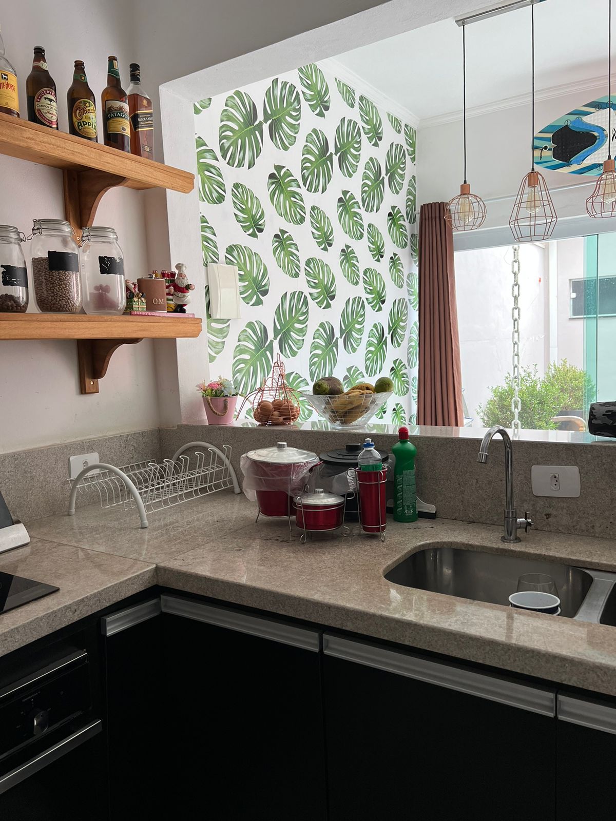 • Cozinha e Sala de Jantar Americana: A cozinha, totalmente equipada, possui micro-ondas, forno e fogão elétricos embutidos, geladeira, filtro de água gelada e armários planejados em madeira. Integrada à sala de jantar americana, proporciona um ambiente prático e convidativo para refeições e encontros familiares.