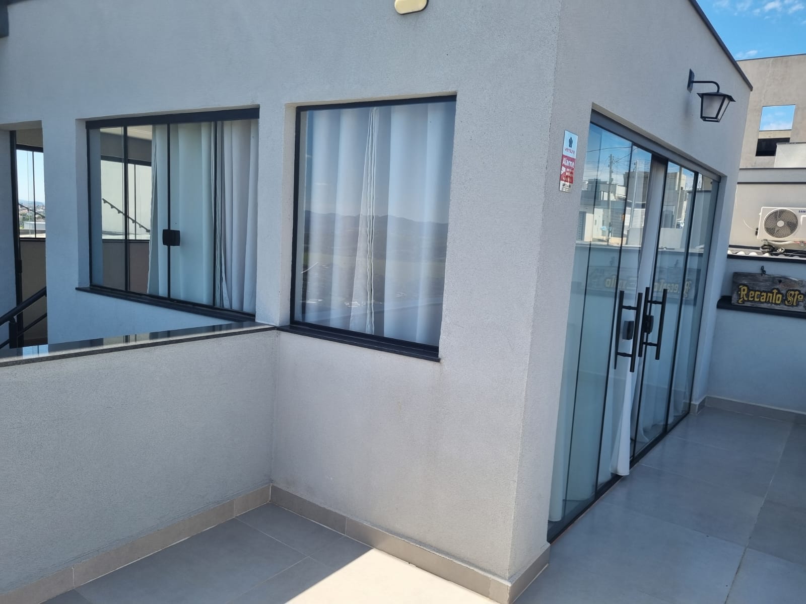 Na parte superior temos a área gourmet com churrasqueira, lavabo e terraço.