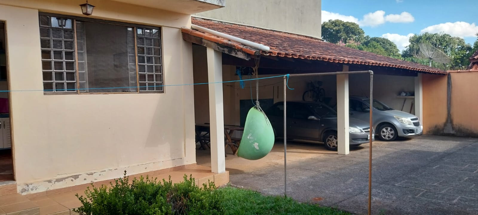 Vagas cobertas para 4 veículos e churrasqueira.