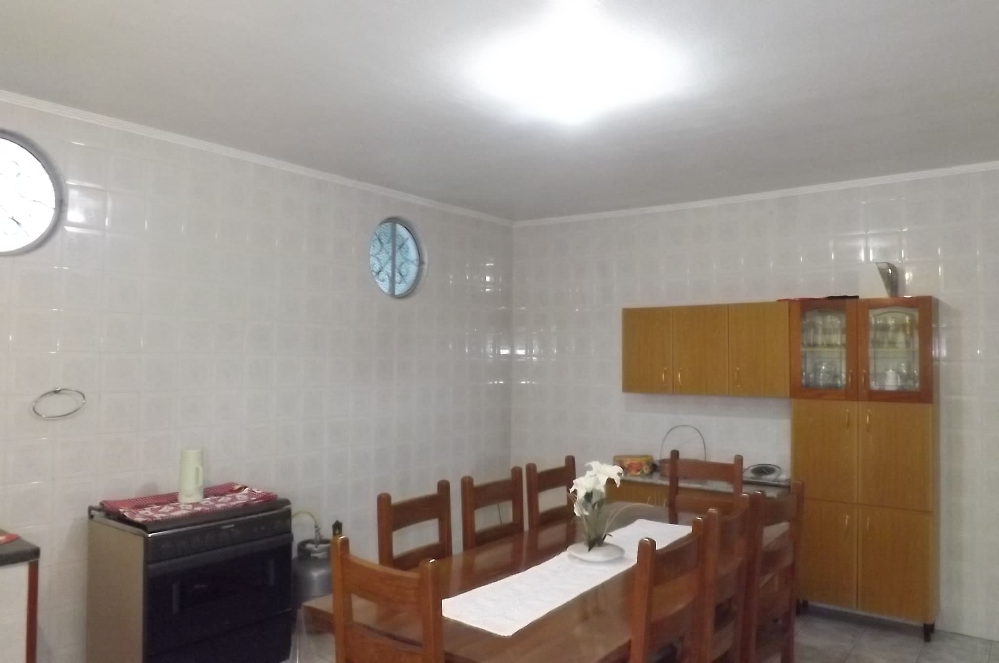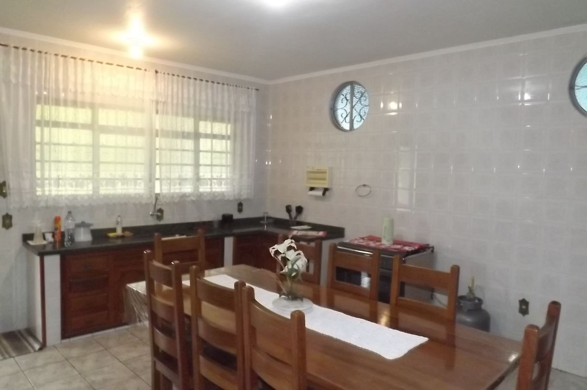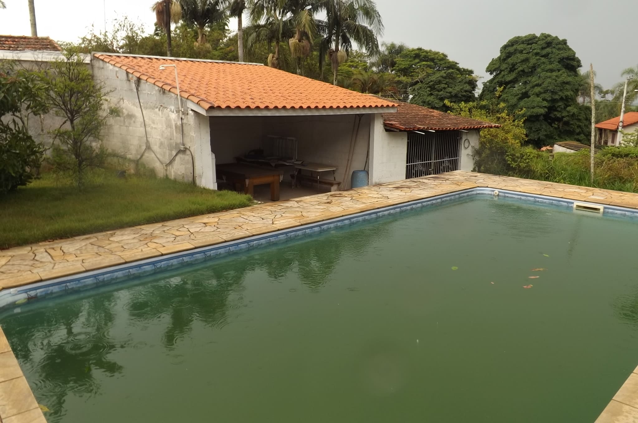 cozinha ampla, piscina e churrasqueira.