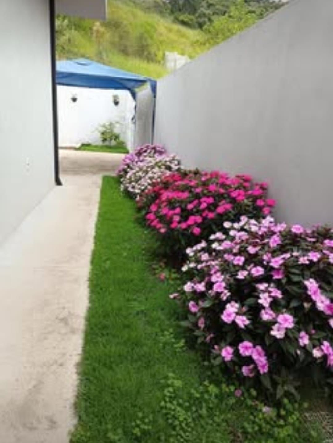 Jardim, atrás da casa tem uma área verde que é proibido mexer, por isso ninguém poderá construir lá