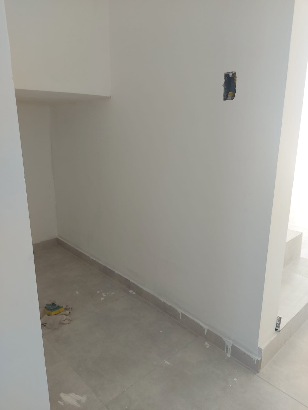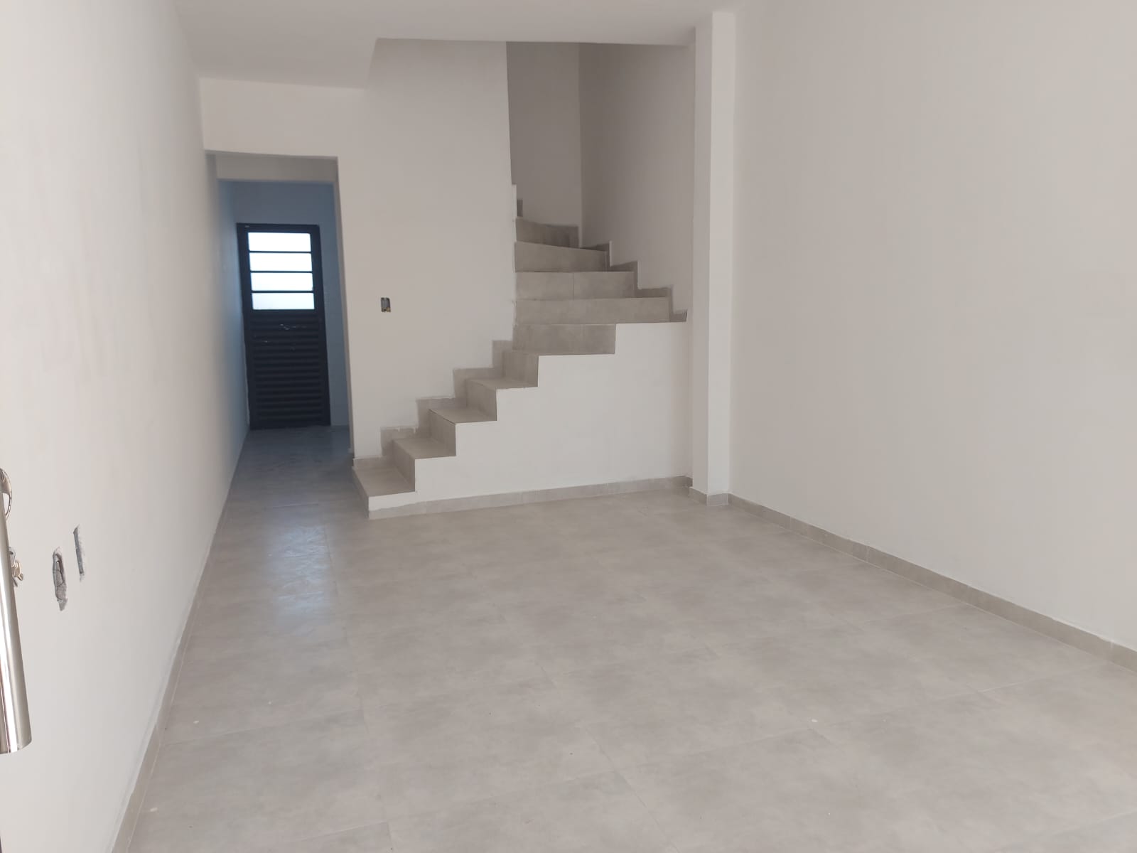 Um espaço abaixo da escada com possibilidade de ser um lavabo ou mesmo uma dispensa