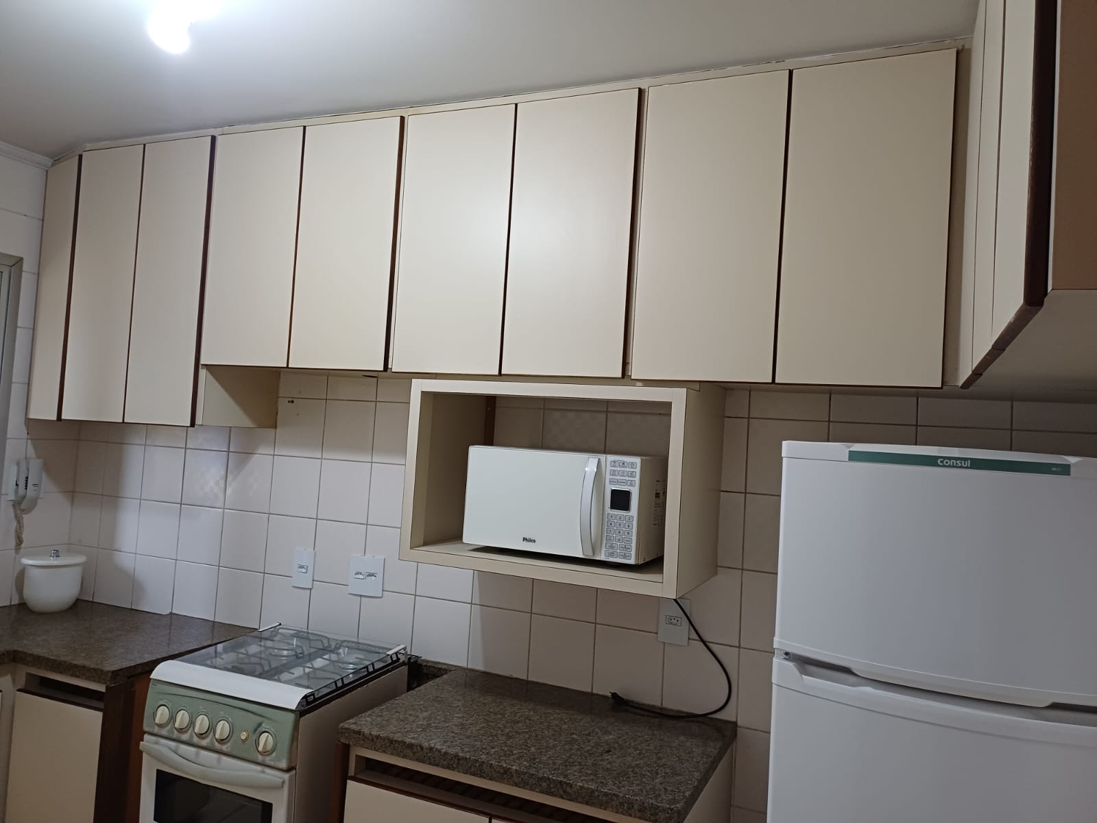 Possui planejados na cozinha, nos dois quartos e na área de serviço, com ampla quantidades de armários.