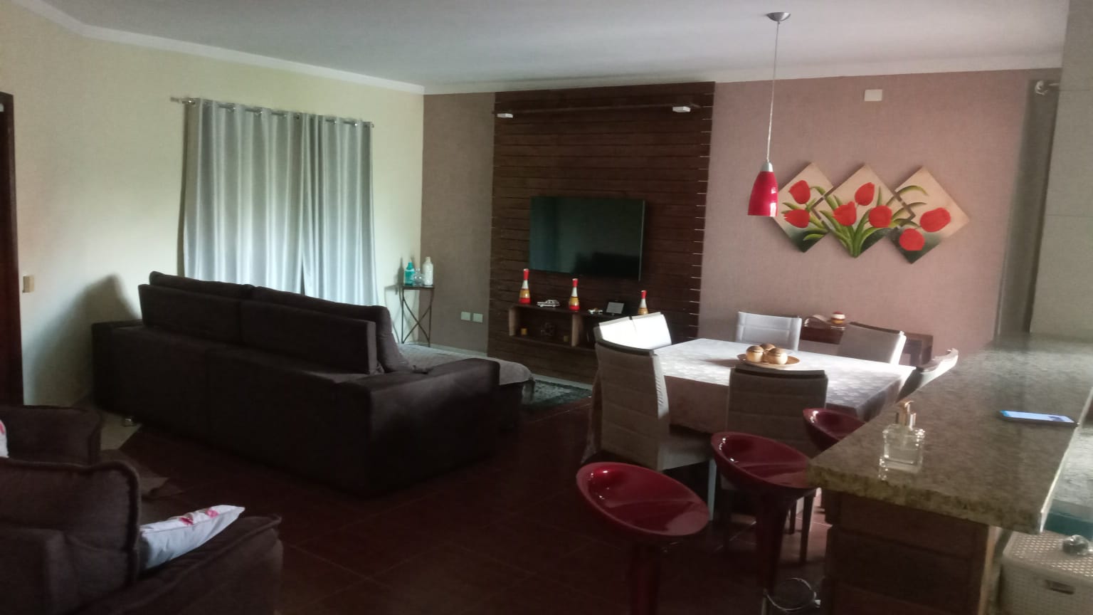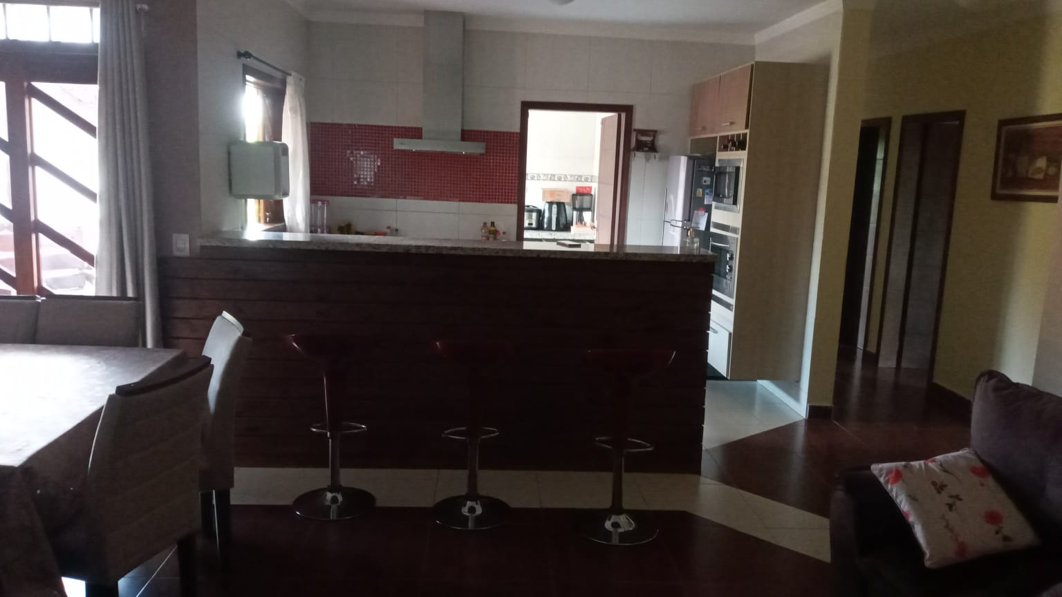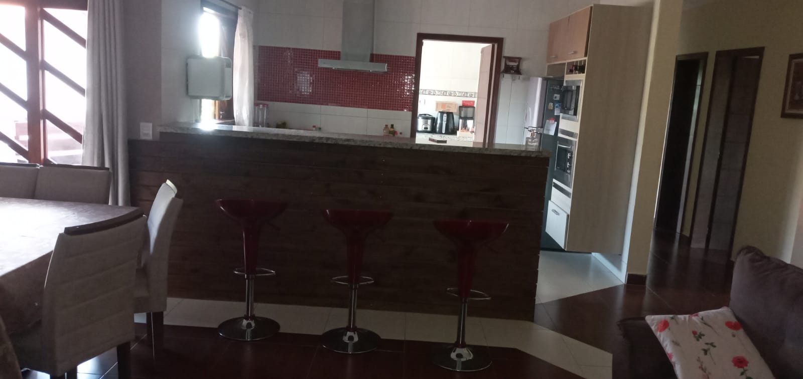 A casa é cercada por varanda e possui 3 dormitórios incluindo 2 suítes, 1 suíte master com closet, cozinha ampla repleta de armários, sala 2 ambientes e escritório. A casa tem ótima ventilação e iluminação naturais.