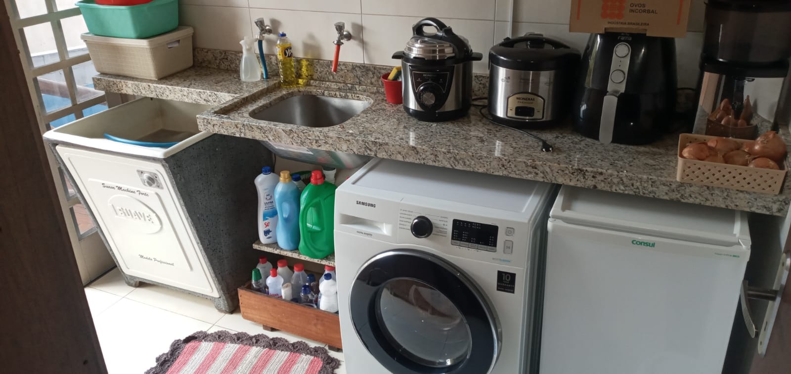 Conta com móveis planejados e cama grande de alvenaria. A lavanderia tem um diferencial, pois foi construída com pedra de granito.