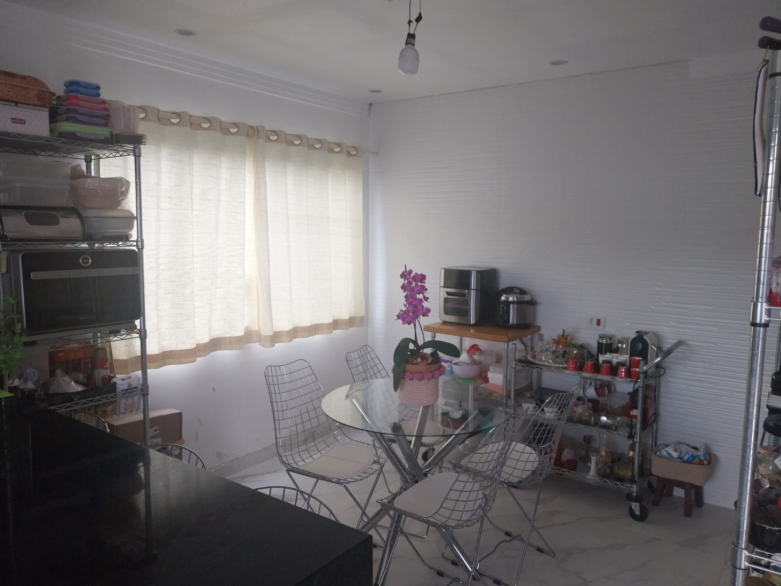 Sala de estar espaçosa e ampla cozinha com sala de jantar integrada.