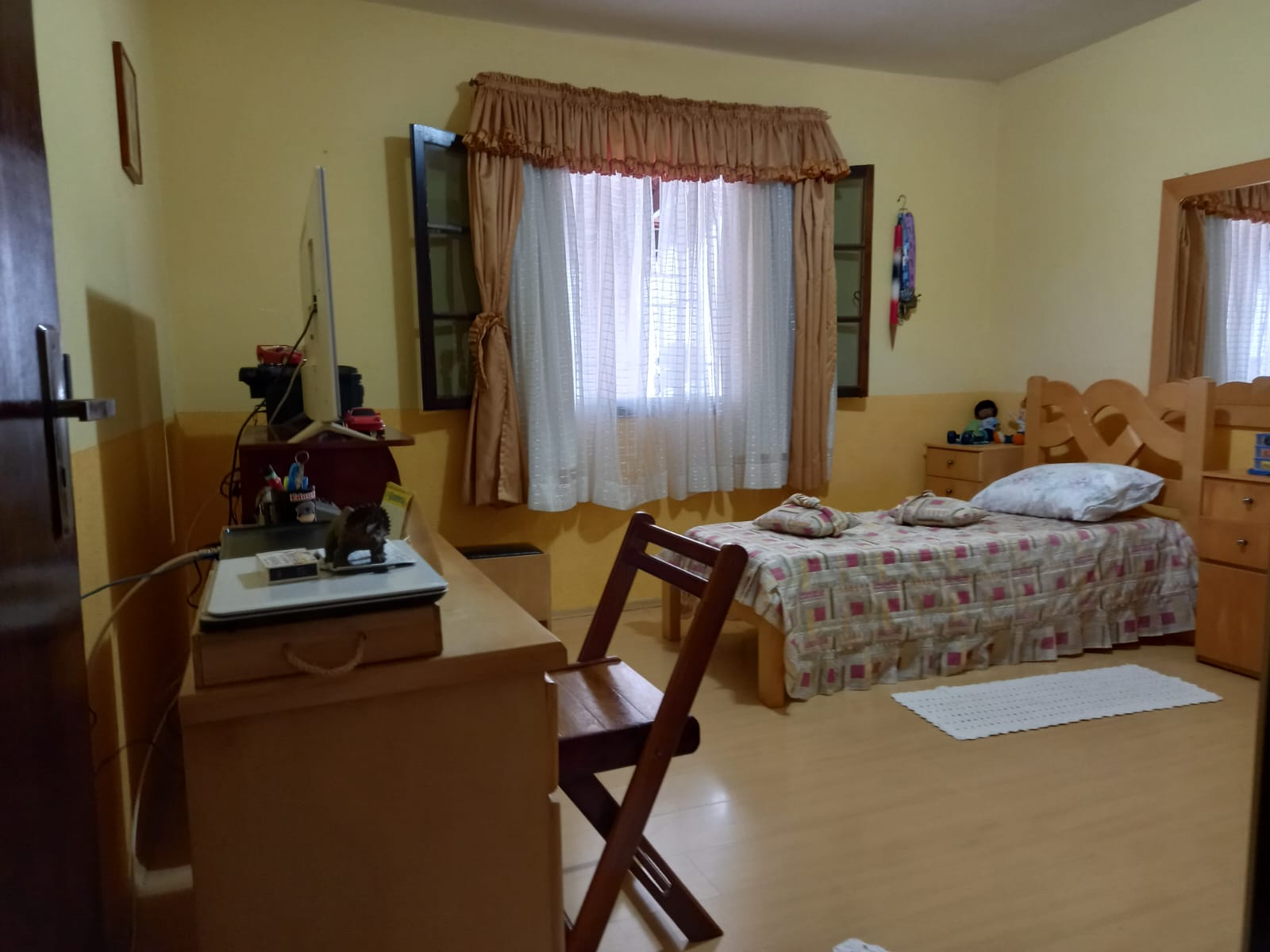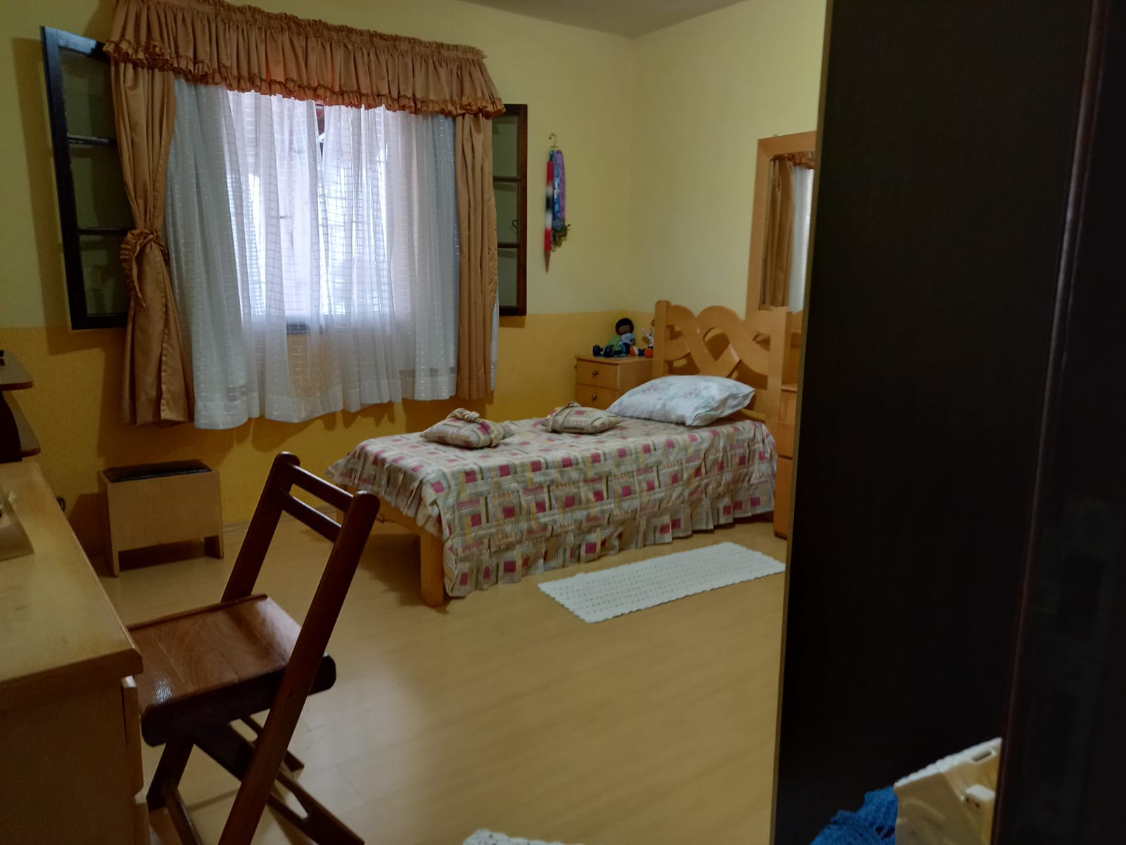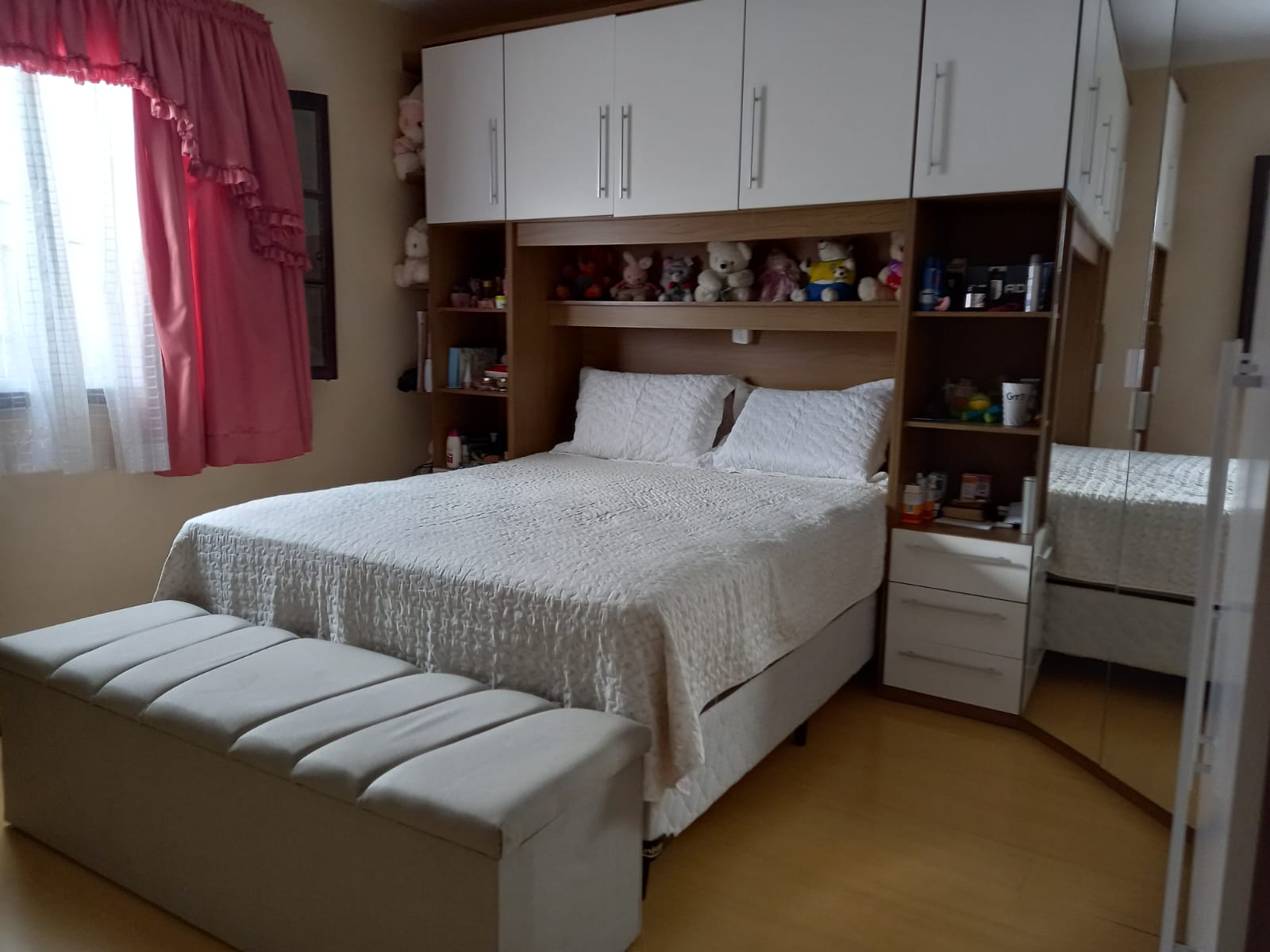 Possui 3 dormitórios confortáveis com piso de carpete de madeira.