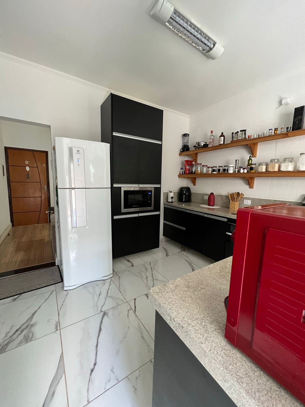 • Cozinha e Sala de Jantar Americana: A cozinha, totalmente equipada, possui micro-ondas, forno e fogão elétricos embutidos, geladeira, filtro de água gelada e armários planejados em madeira. Integrada à sala de jantar americana, proporciona um ambiente prático e convidativo para refeições e encontros familiares.