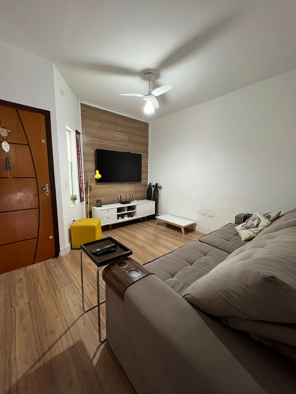 • Sala de Estar: Ampla e mobiliada, conta com um sofá confortável, televisão de 65”, piso de madeira e um lavabo.