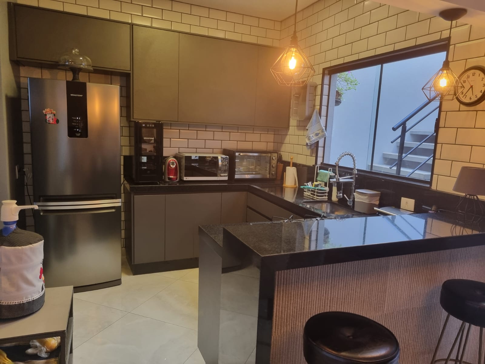 A casa tem armários planejados na cozinha e área gourmet.