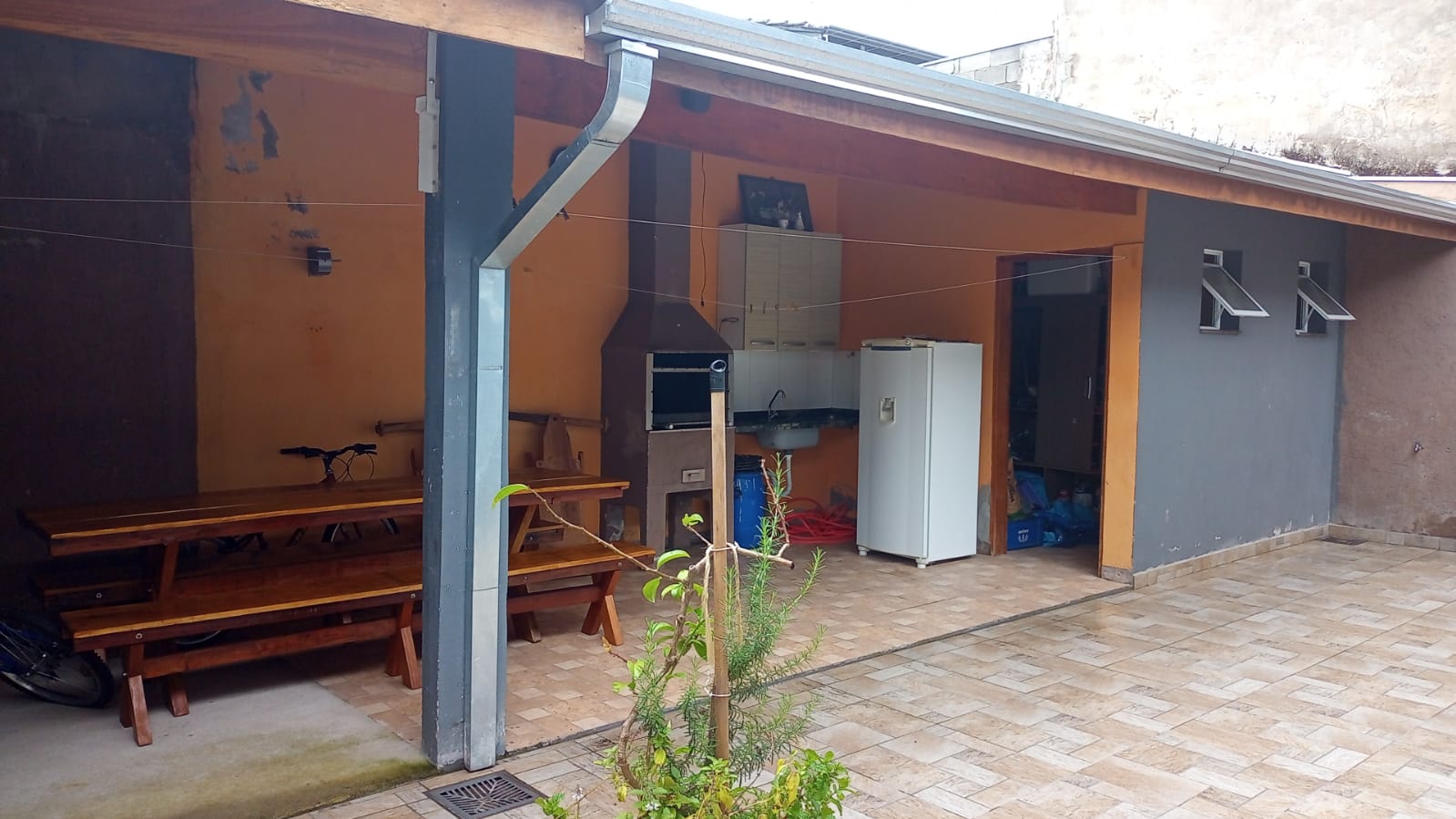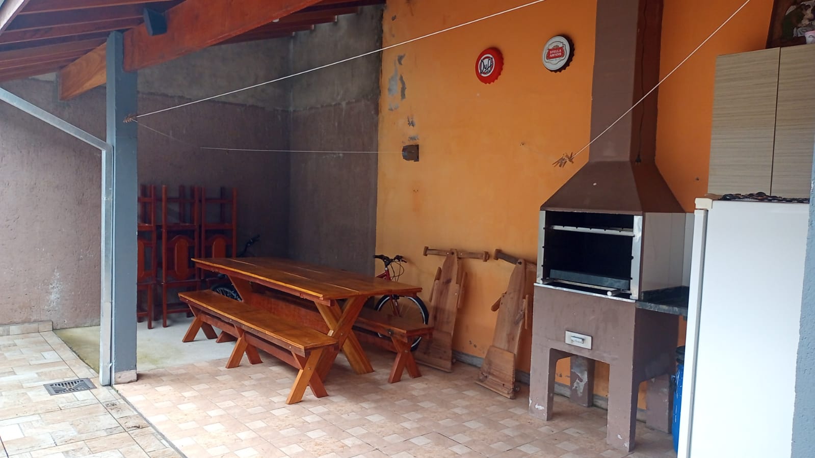 Área do quintal contém: espaço gourmet de 30m² com churrasqueira, lavabo, quarto de despejo.