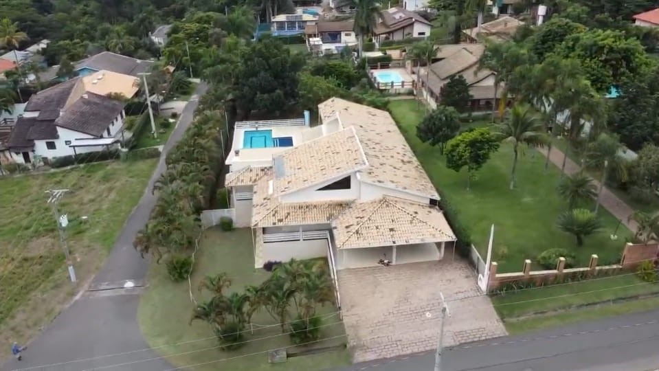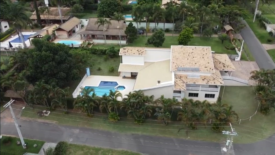 A chácara fica num terreno de esquina medindo 1406m² e 550m² de área construída.