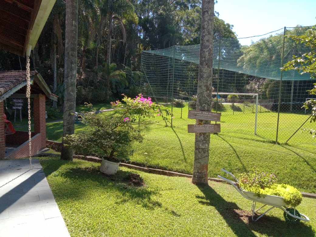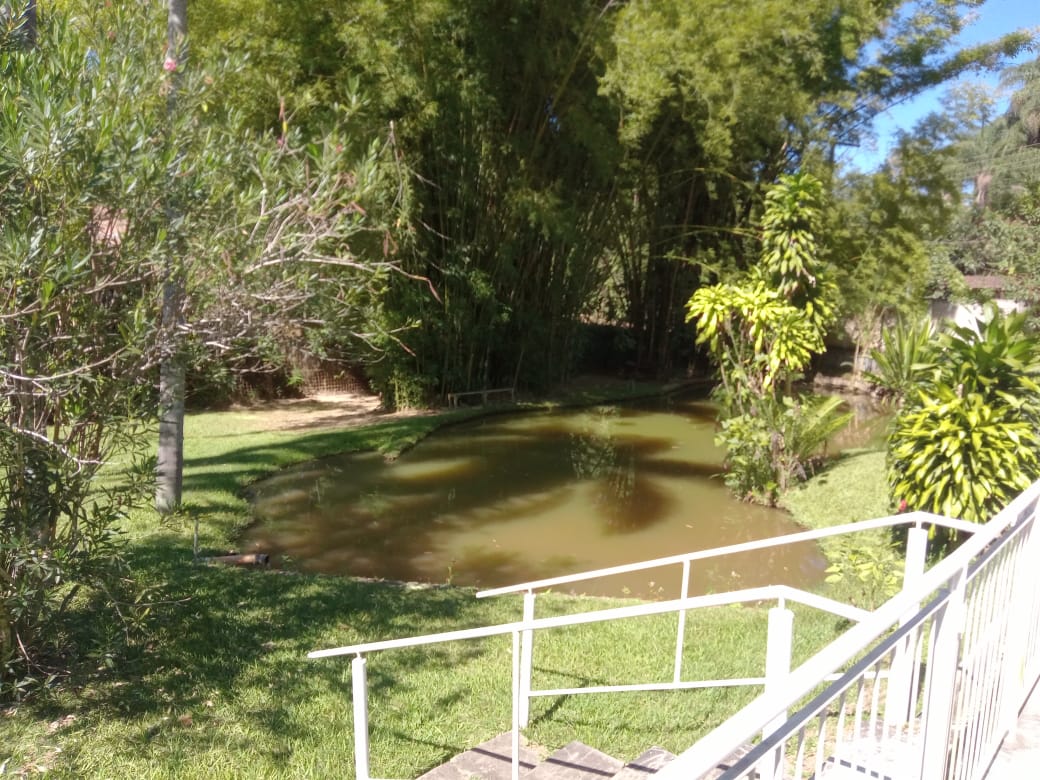 Passa uma nascente no meio da chácara e ainda conta com um lago de pesca.