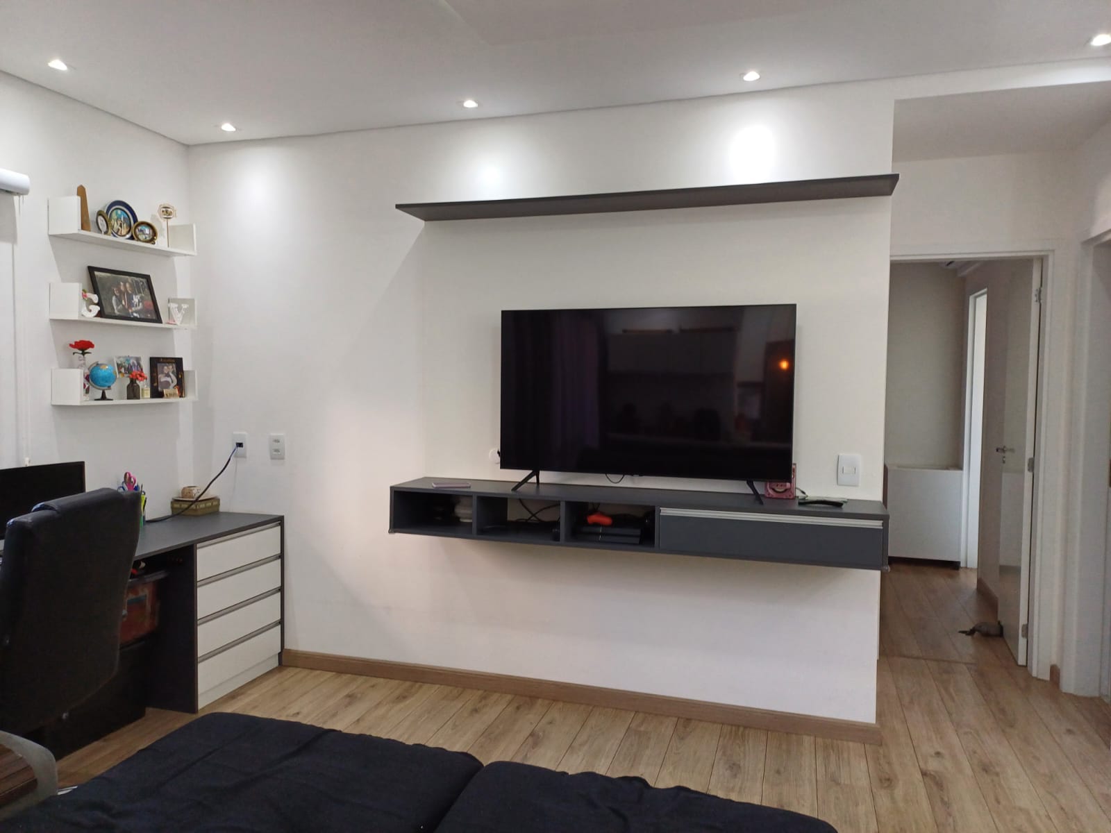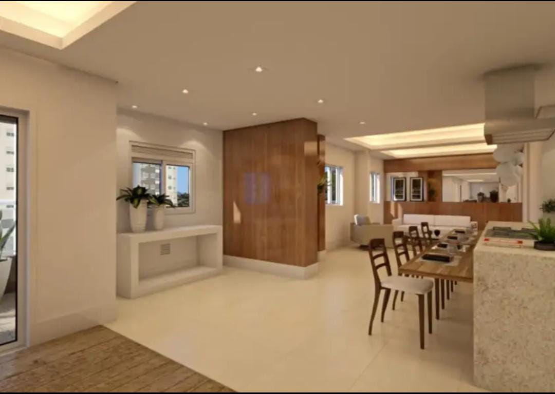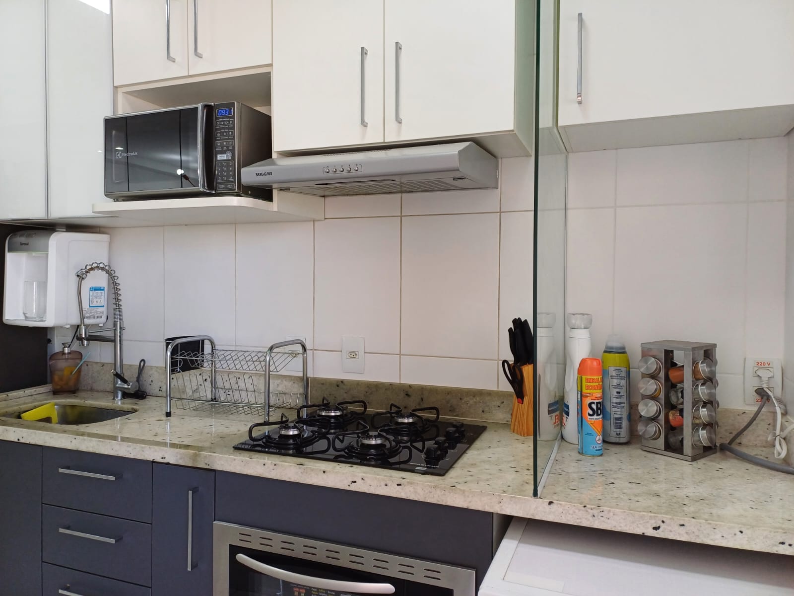 Já há planejados instalados na cozinha, sala, quartos e banheiros.