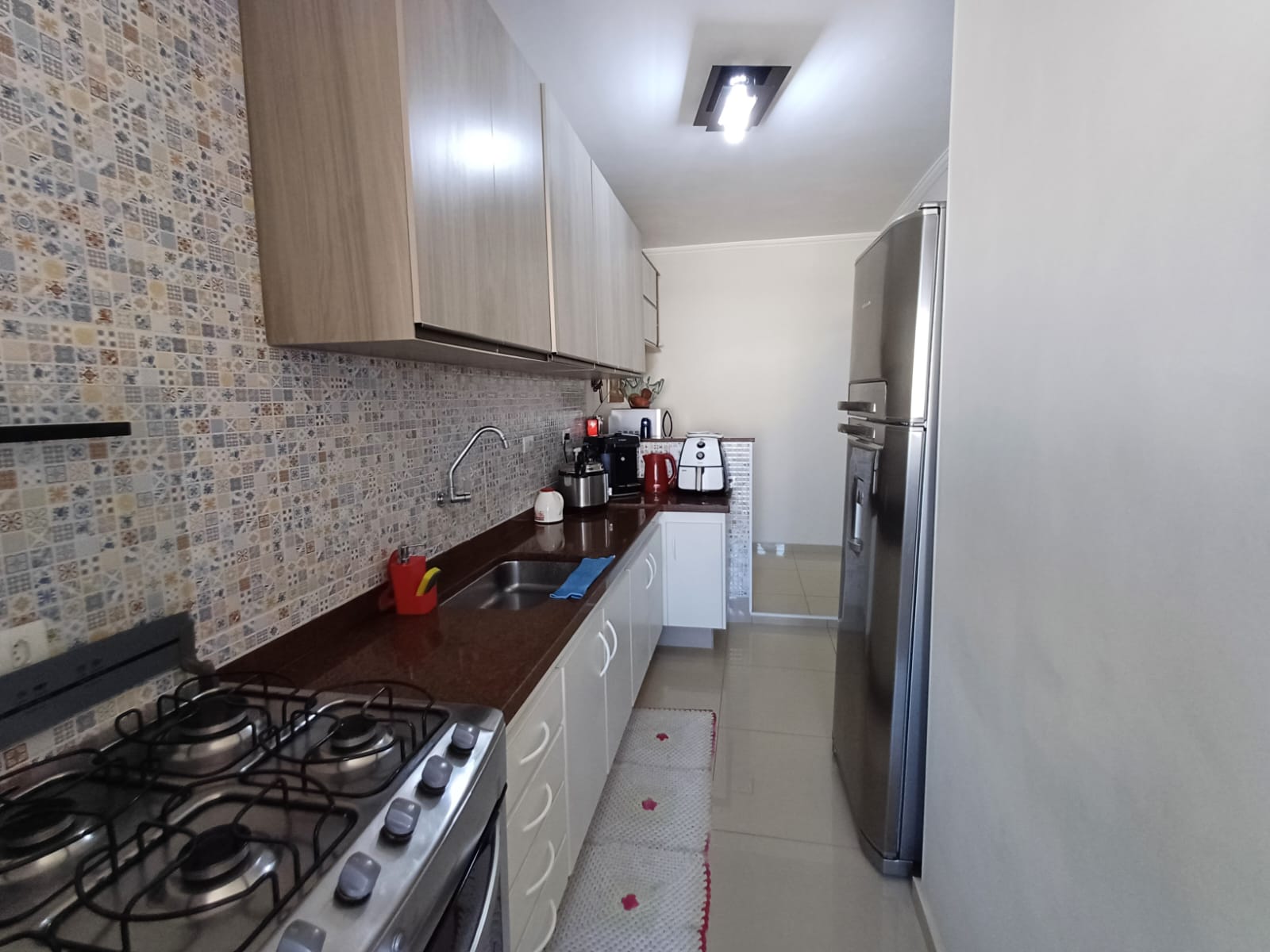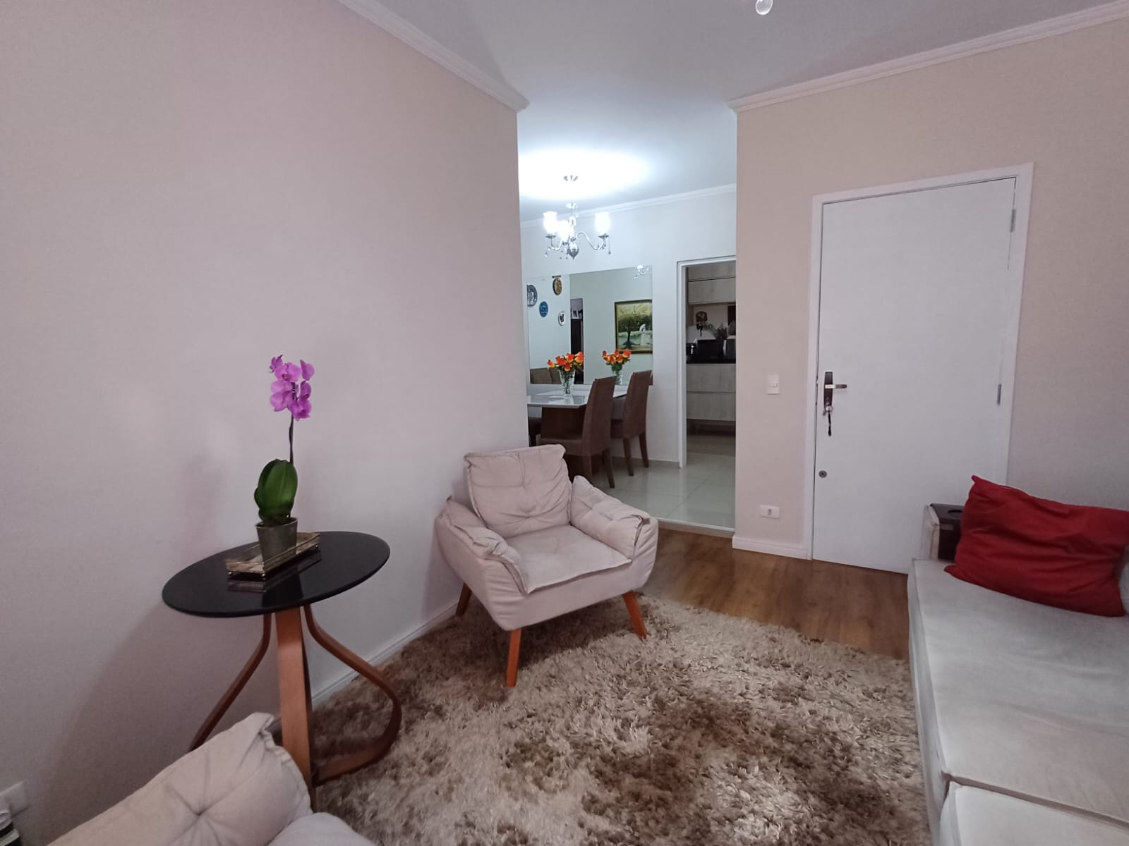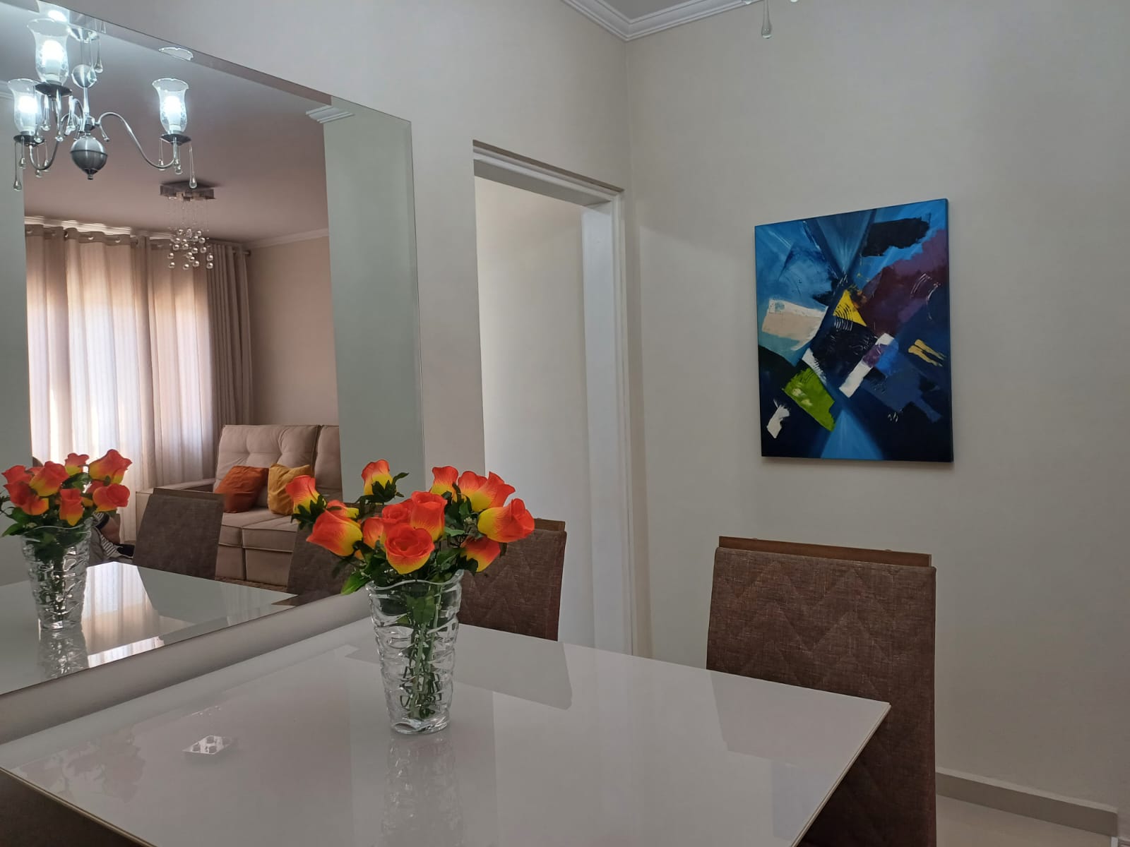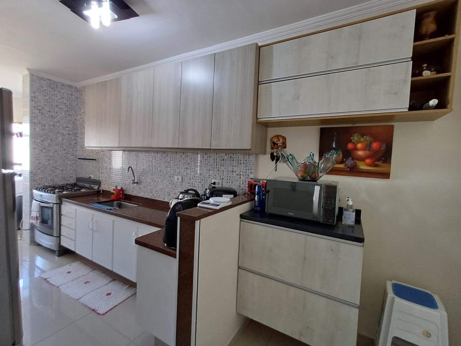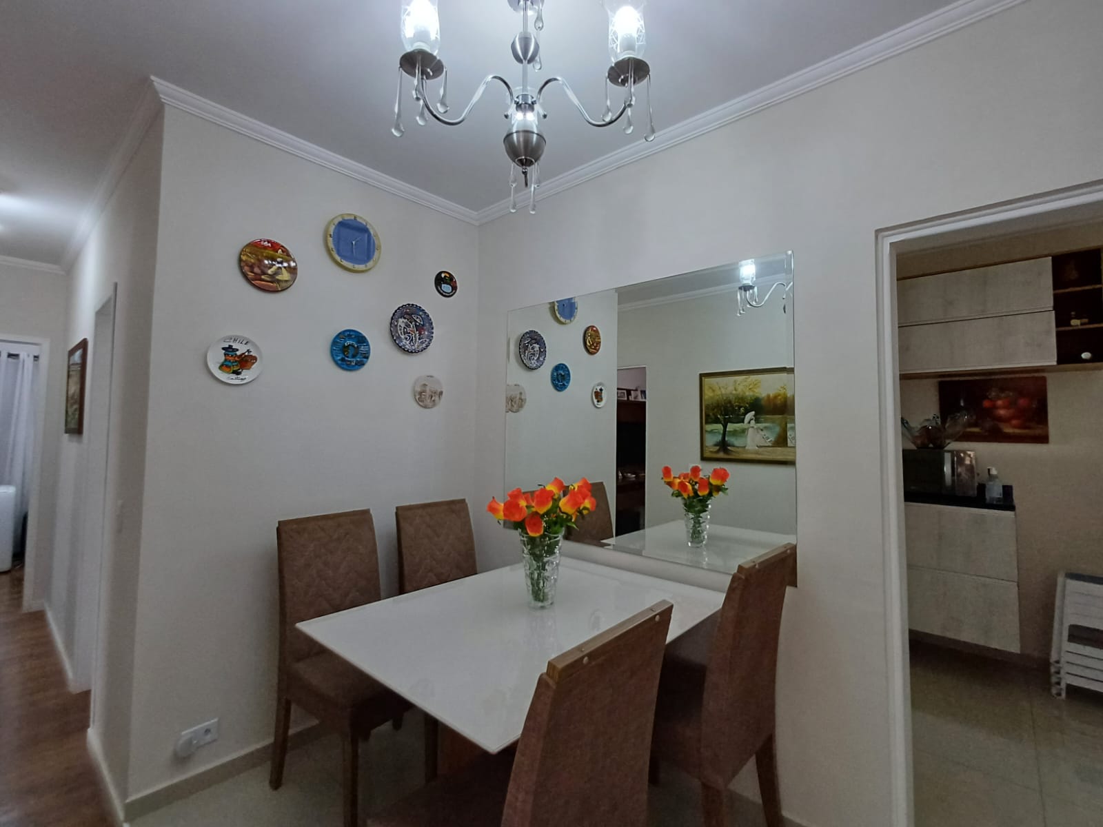 Duas salas integradas, 1 cozinha espaçosa, 3 dormitórios - sendo um transformado em closet, 2 banheiros, 2 vagas de garagem coberta, salão de festas + churrasqueira.