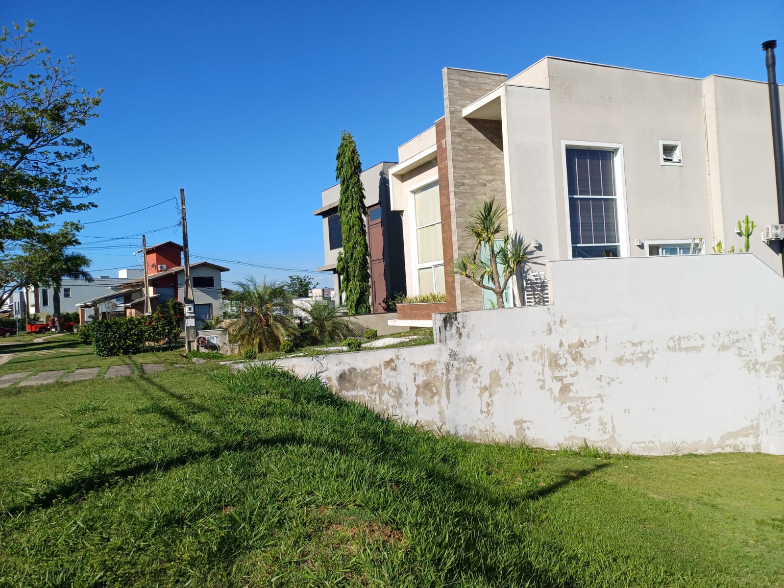 Leve declive que valoriza o projeto arquitetônico.
