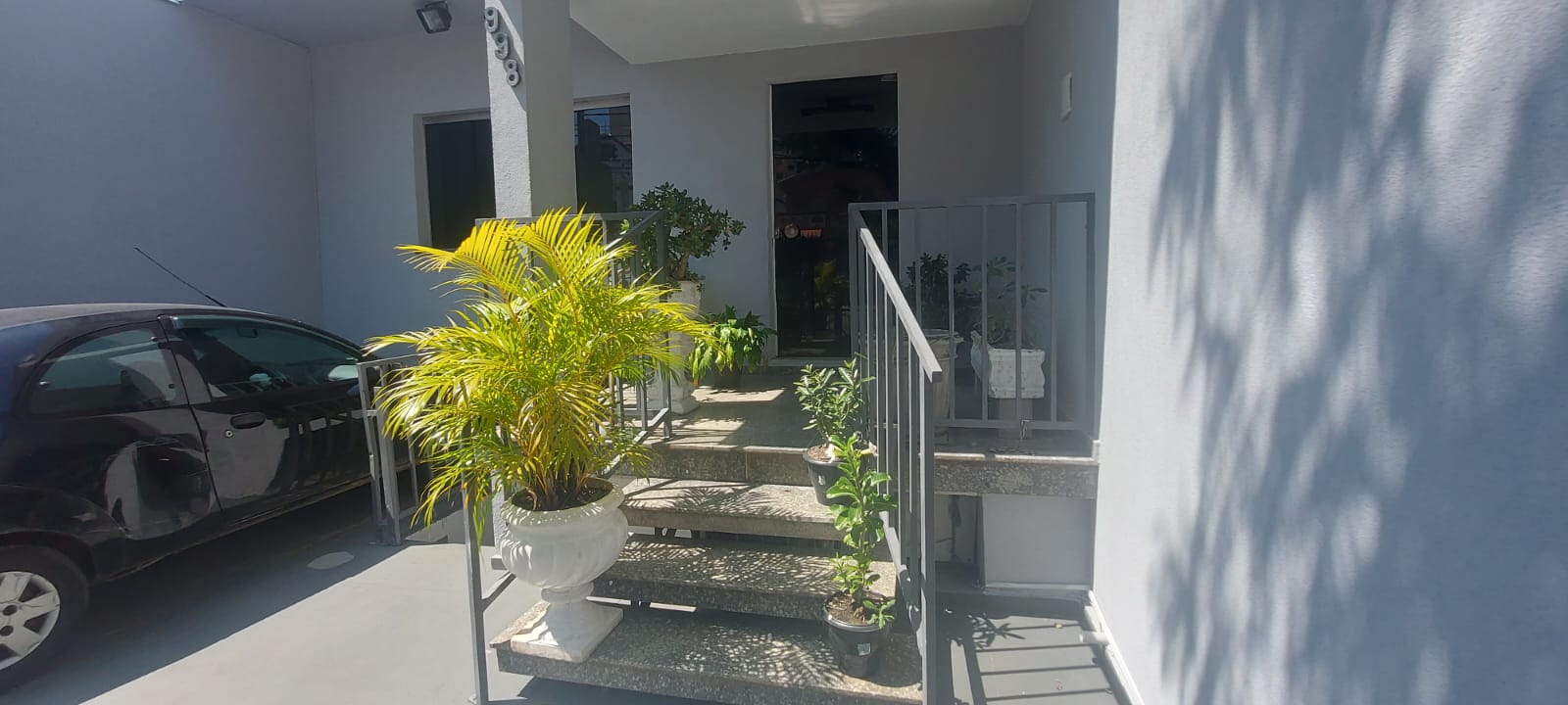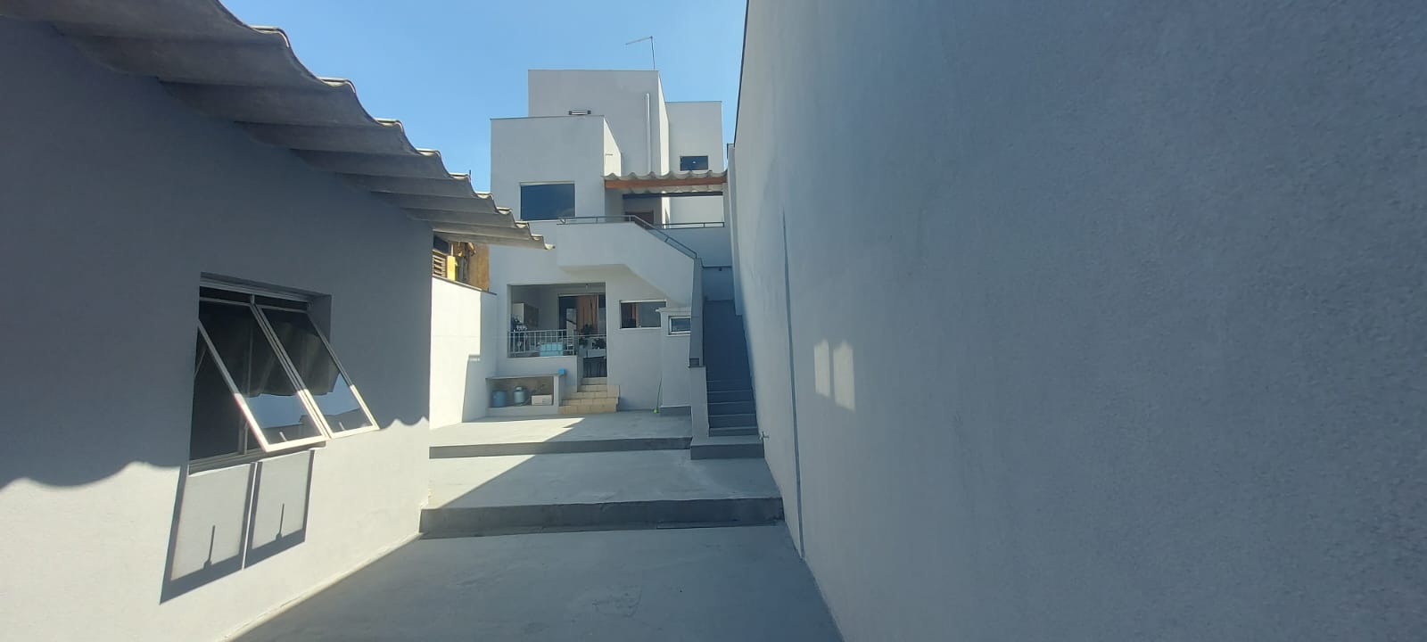 Casa 1 (Sobrado): Tem 3 dormitórios grandes (sendo um desses com sacada), 2 banheiros, sala de estar, sala de jantar, cozinha, área de serviço, uma vaga de garagem.